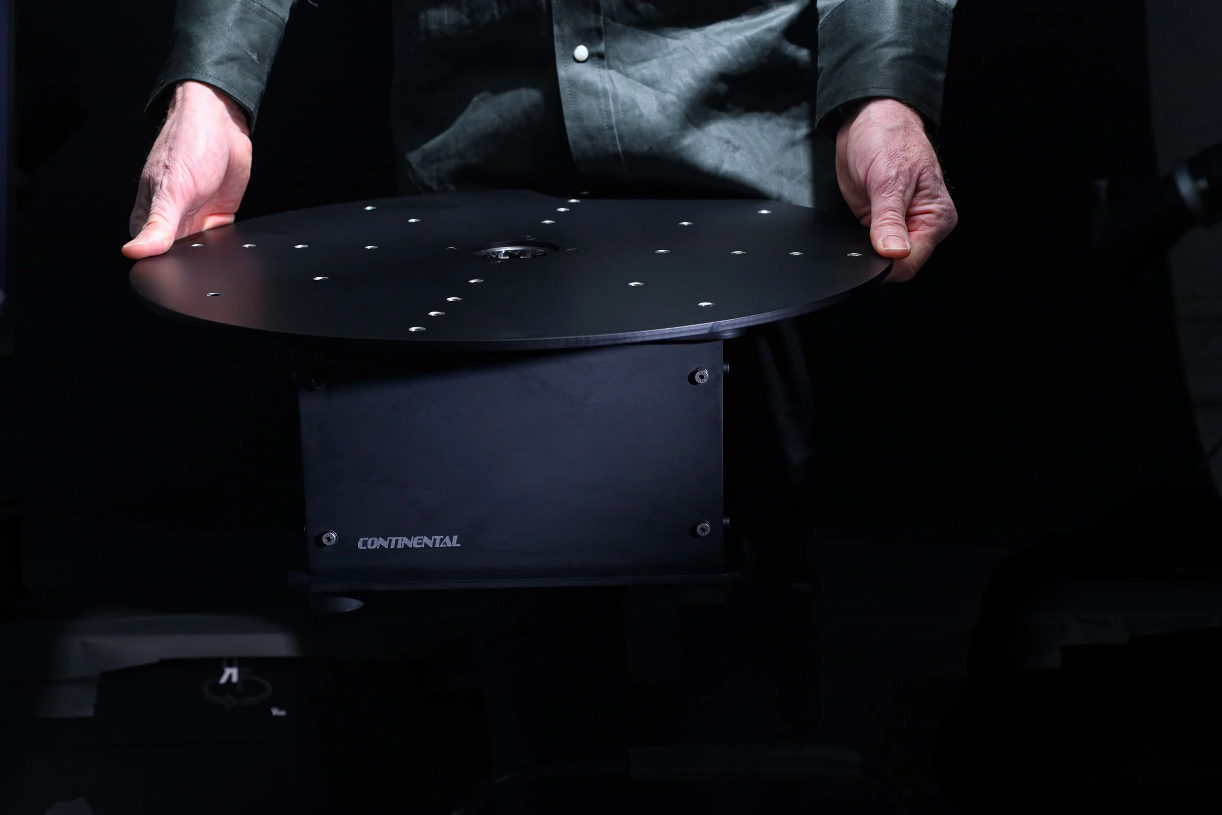 The 3rd generation Continental has increased weight capacity to 400lbs and changed to a 20” aluminum platter. 24 holes are tapped to 3/8” x 16 to accept any accessories or rigging you may have. The Continental is set up to handle nearly anything you can throw at it and do it without complaint.